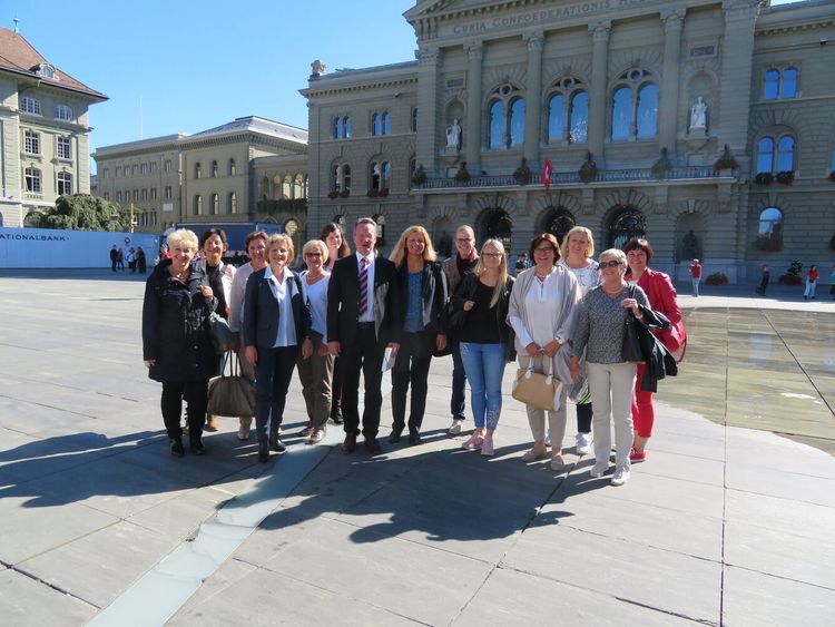 Am 27. September 2018 hat sich eine Gruppe FDP Frauen Graubünden zu einem Herbstanlass/Ausflug getroffen. Die Reise führte die Gruppe nach Bern, wo ein gemeinsames Mittagessen mit FDP Ständerat Martin Schmid auf dem Programm stand. Beim Mittagessen war nebst den regen, interessanten, politischen und spekulativen Diskussionen die Bundesrats-Rücktritte auch ein Thema. Die Präsidentin der FDP Frauen , Grossrätin Anna-Margreth Holzinger überreichte Martin Schmid zum Dank für die Einladung eine Bündner-Nusstorte. Am Nachmittag stand dann der Besuch auf der Tribünen des Nationalrates auf dem Programm, sodass man den Geschäften des Nationalrates folgen konnte. Bei der aktuellen Debatte “Beziehungen zwischen der Schweiz und der Europäischen Union”, bzw. Fragestunde, war FDP Bundesrat Ignazio Cassis ebenfalls im Rat anwesend. Die Präsidentin der FDP.Die Liberalen Frauen Schweiz, Nationalrätin Doris Fiala, hat sich während der Debatte die Zeit genommen und den Bündner FDP Frauen auf der Tribüne einen Besuch abgestattet und sie willkommen geheissen. Als Abschluss gab es dann noch eine Kurzführung durch das Bundeshaus. Auf der Treppe unter dem grossen Denkmal der drei Eidgenossen auf dem Rütli bekamen die Bündner FDP Frauen noch einige Informationen über den Parlamentsbetrieb wie auch über die Geschichte und Symbolik des Bundeshauses.